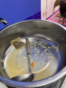 いよいよ実食!出来上がったすいとんはほっこりとした味わいで心も体も温まりました。すいとんスイーツはほぼみたらし団子。おかわりしながら全員で完食です!